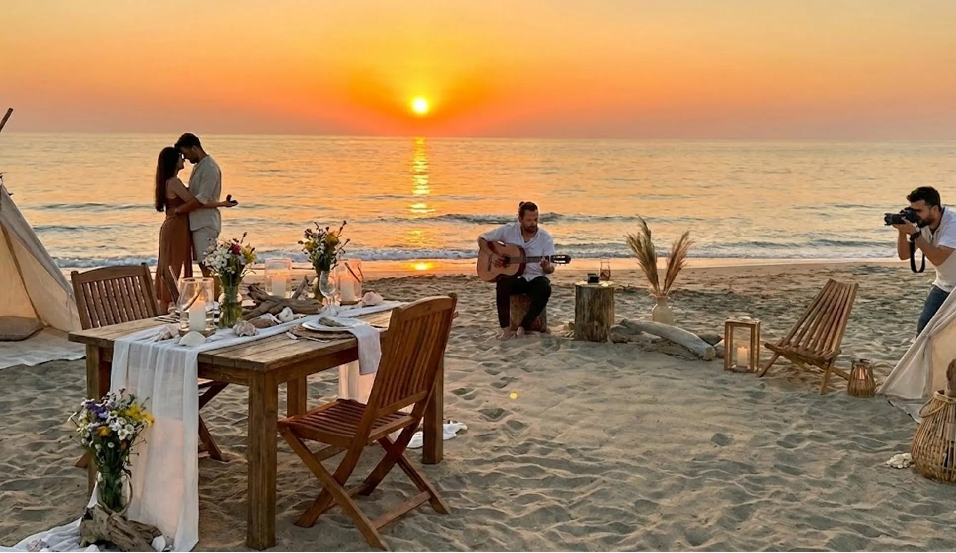 Kumsalda evlilik teklifi, doğallığın ve romantizmin en sade halidir. Lüks restoranların kalabalığından uzakta; dalga sesleri, hafif esinti ve gün batımının altın ışıklarıyla çevrili bir atmosferde sadece sevdiğiniz kişiye odaklanırsınız.